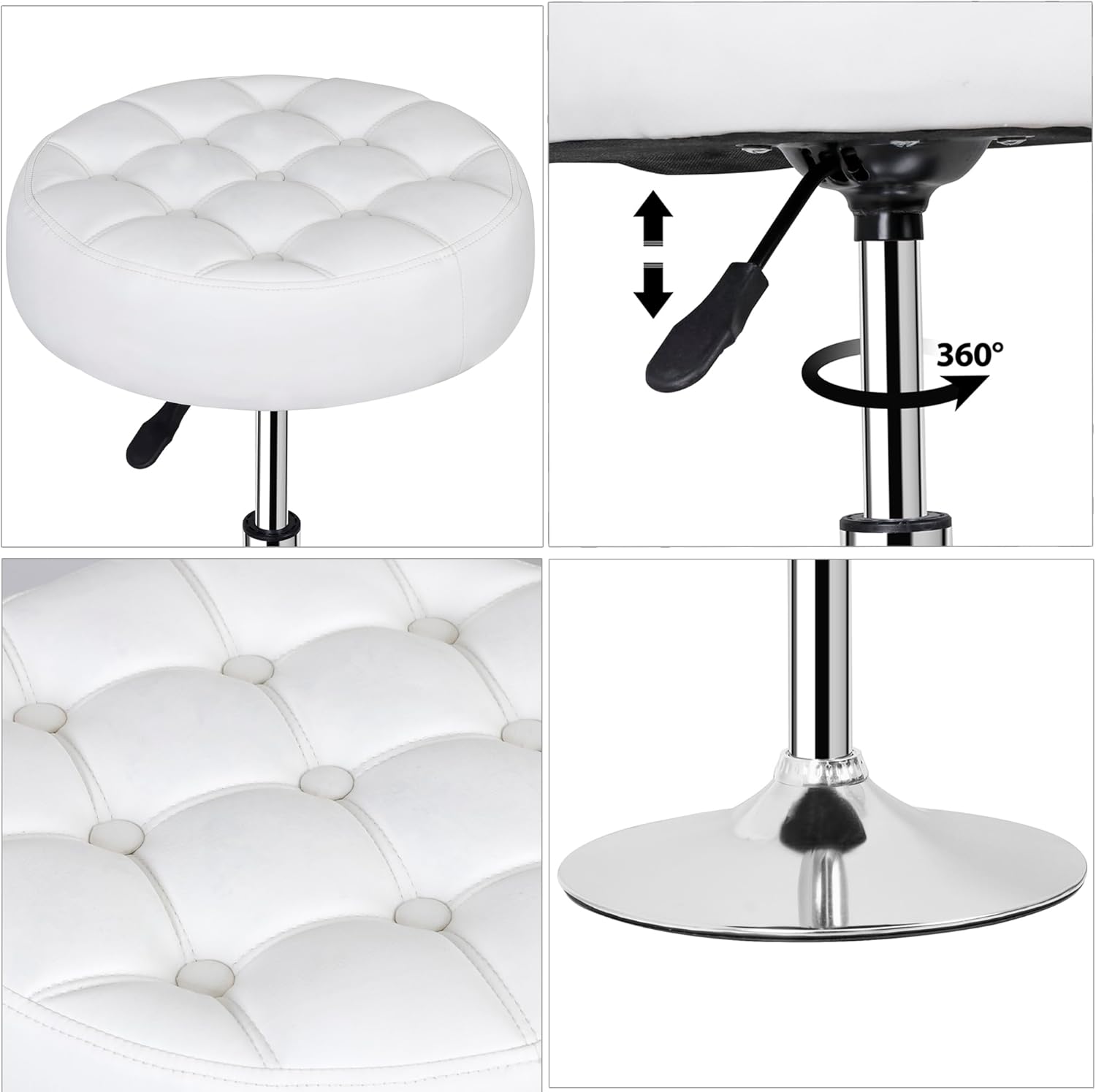 JupiterForce Adjustable Vanity Stool Chair for Makeup, 360° Swivel Makeup Vanity Chair Faux Leather Vanity Stool for Makeup Room, Bathroom and Living Room, White