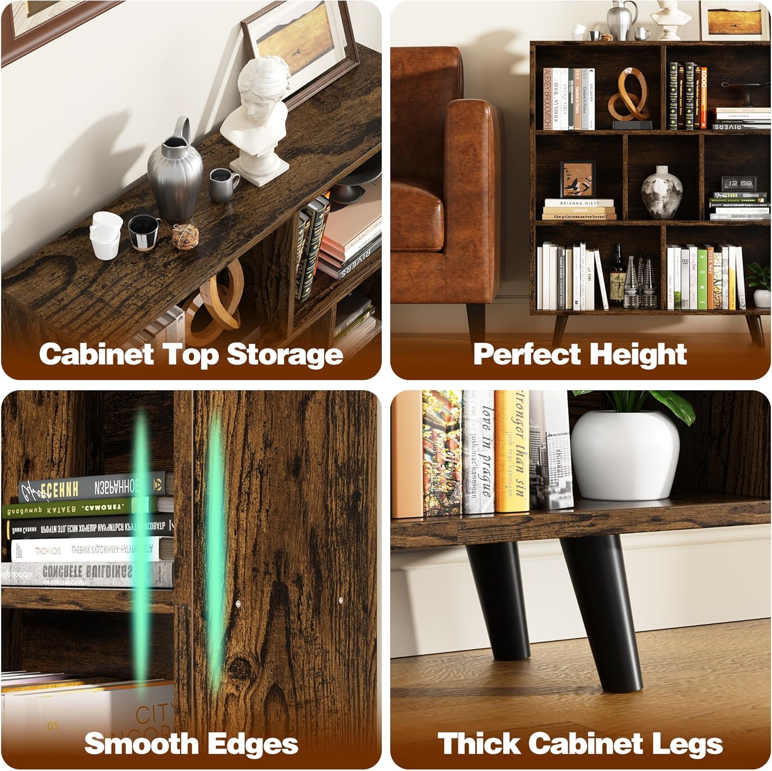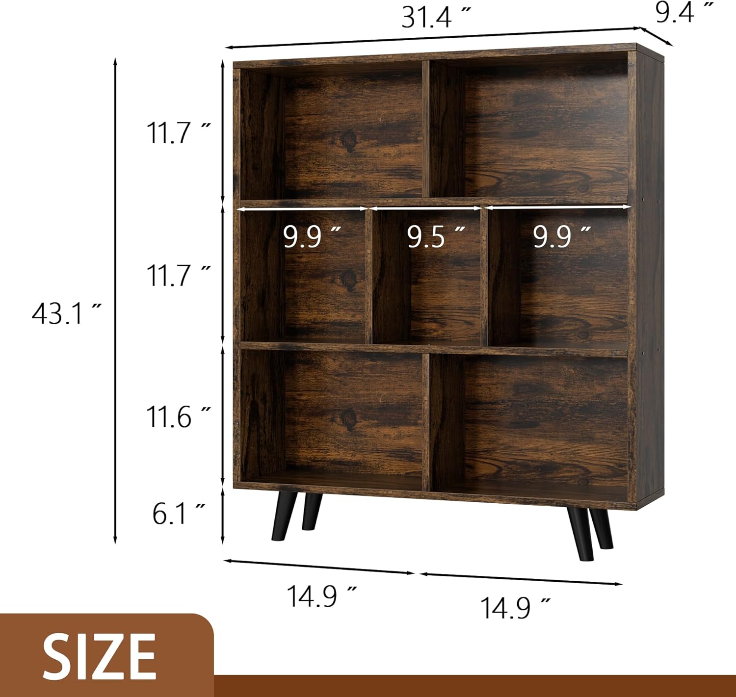 Shintenchi Cube Storage Organizer, 3 Tier Mid-Century Bookcase with Legs Cubeicals Retro Wood Organizer Storage Bookcase, Freestanding Open Book Shelves for Bedroom,Living Room,Office(Brown)