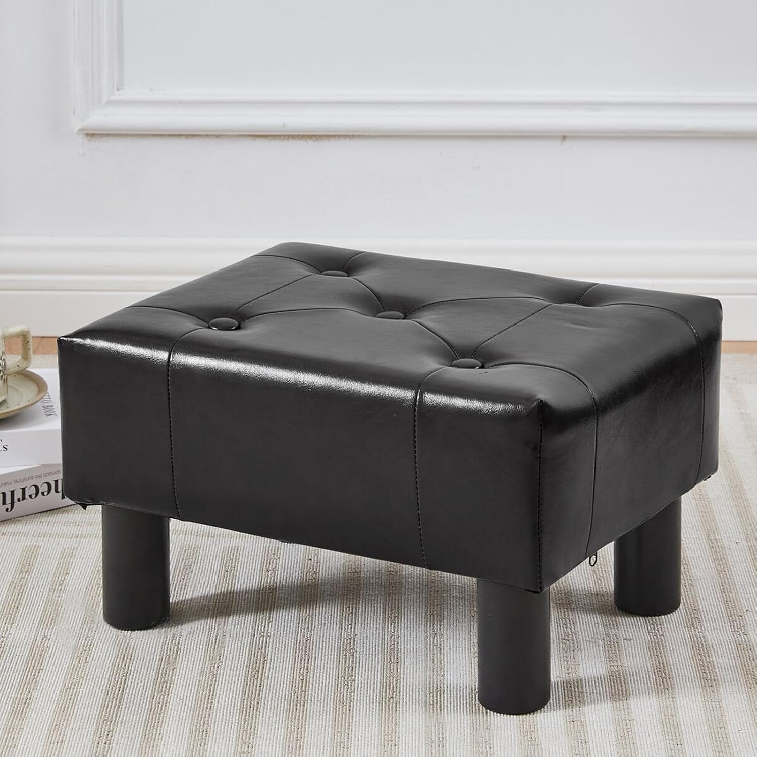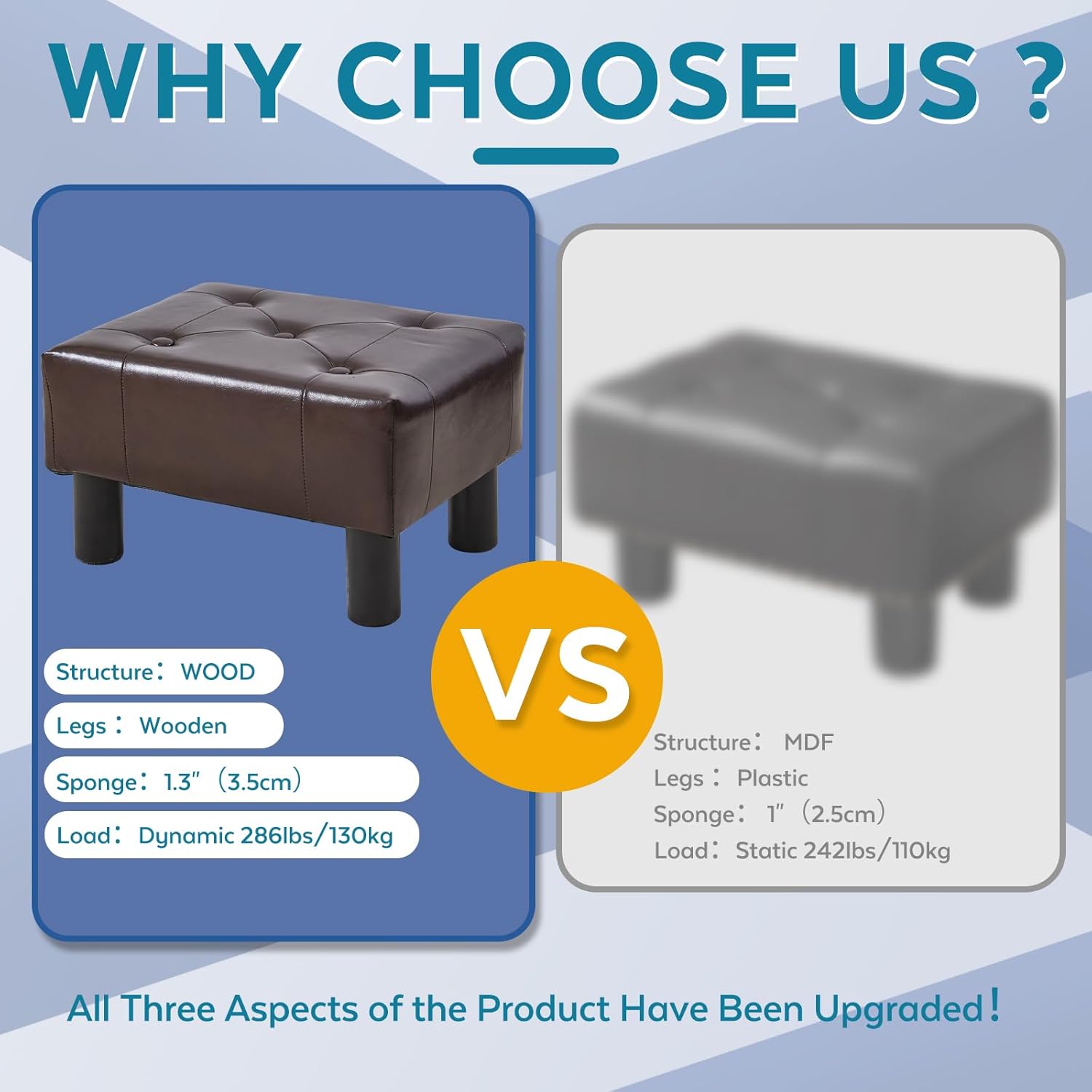 Small Foot Stool Ottoman, Faux Leather Footstool Ottoman Foot Rest for Couch, Rectangle Footstools and Ottomans Small for Living Room, Entryway and Bedroom (Brown)